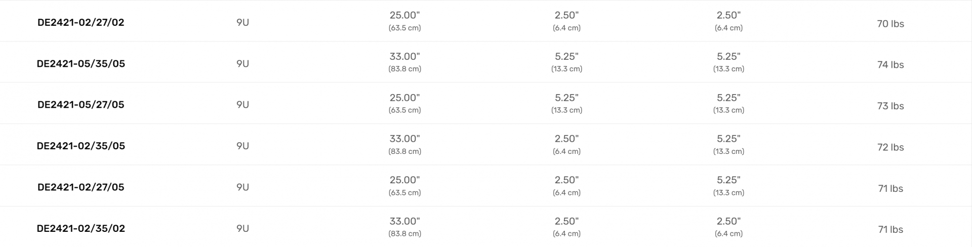 40.40″ x 27.00″ x 24.30″ (102.6 x 68.6 x 61.7 cm) - RACK DEPTH: 25.00″ (63.5 cm)