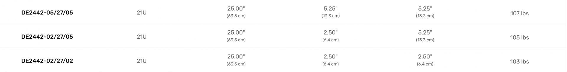 34.90″ x 27.00″ x 44.60″ (88.6 x 68.6 x 113.3 cm) - RACK DEPTH: 25.00″ (63.5 cm)