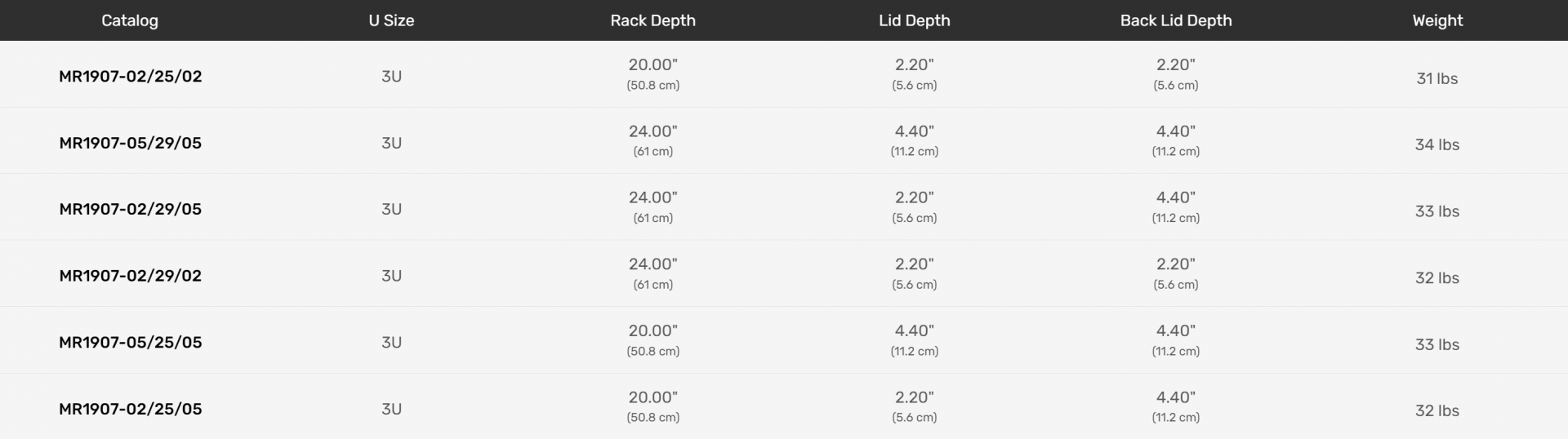 31.10″ x 22.00″ x 9.60″ (79 x 55.9 x 24.4 cm) - RACK DEPTH: 20.00″ (50.8 cm)