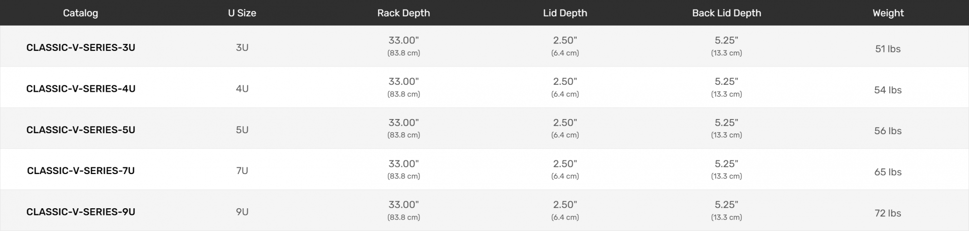 - Weight ranges for 3U – 5U = 80-100 lbs. per case